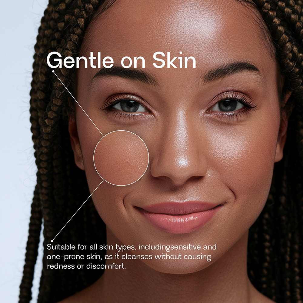 - Gentle Cleanse: Effectively eliminates impurities while keeping your skin’s natural balance intact.