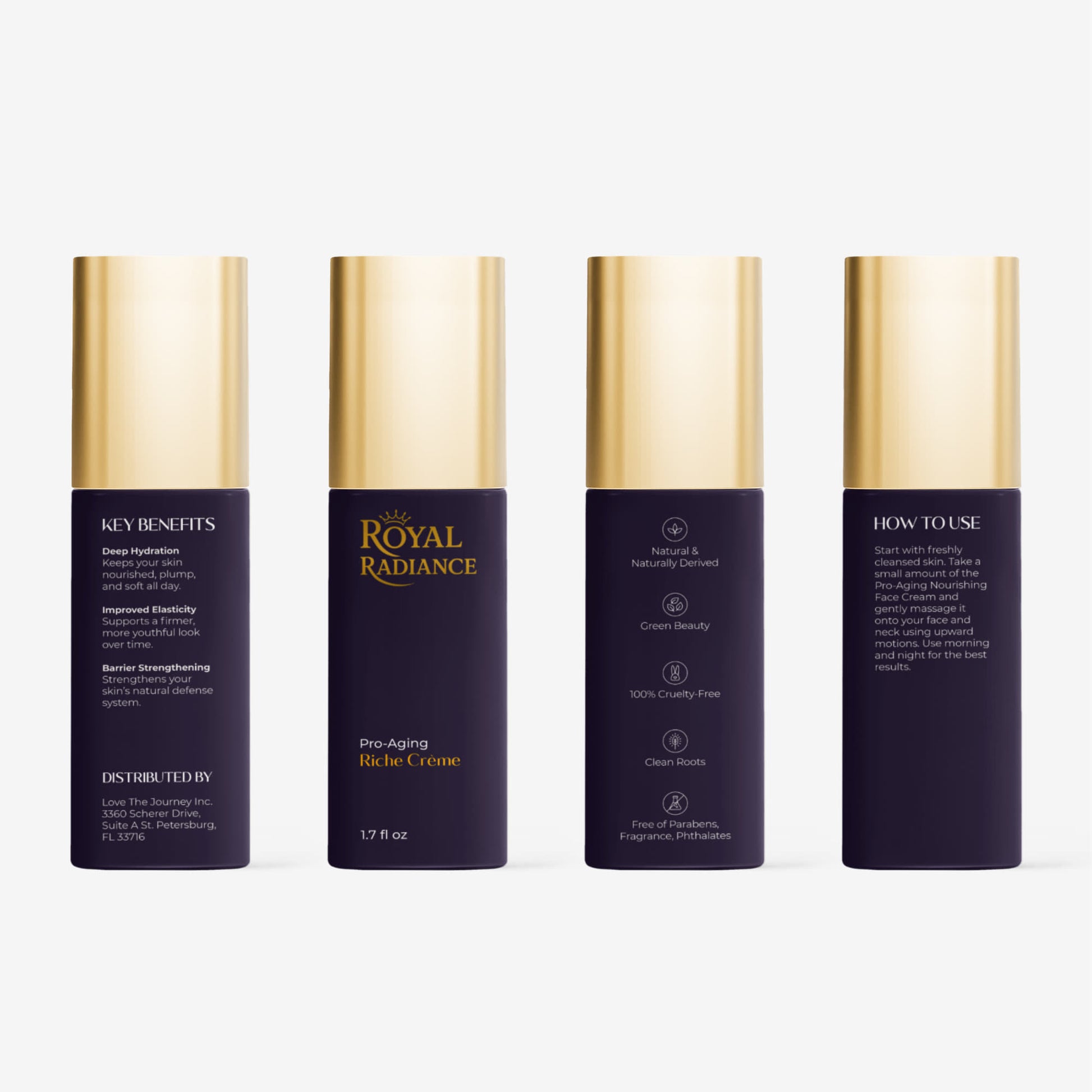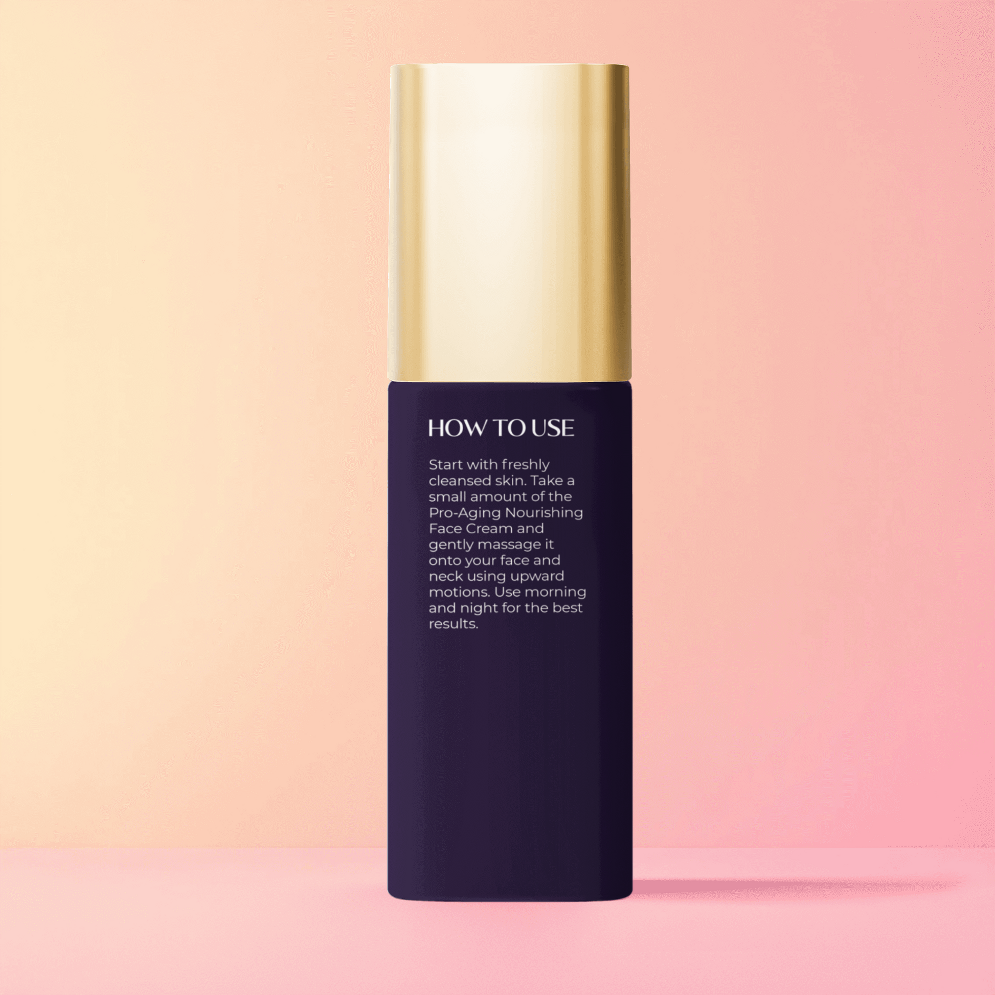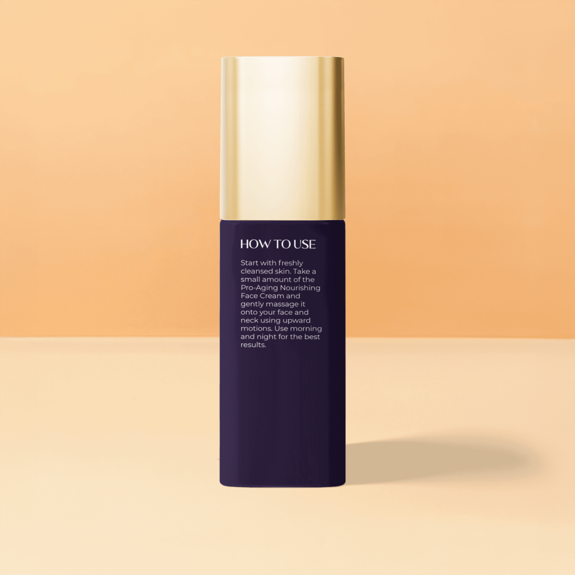 Start with freshly cleansed skin. Take a small amount of the Pro-Aging Nourishing Face Cream and gently massage it onto your face and neck using upward motions. Use morning and night for the best results.